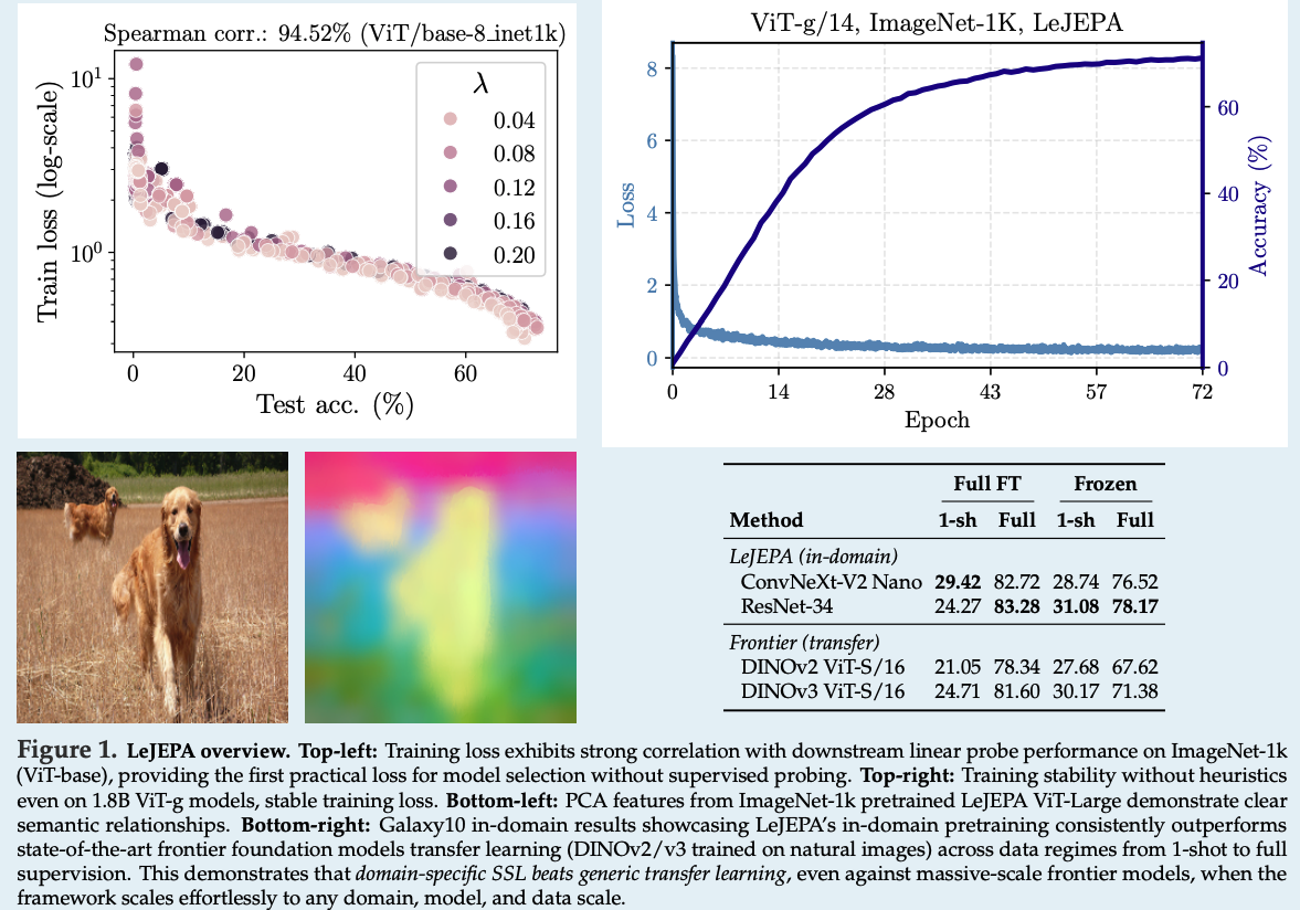 본 논문에서는 JEPAs에 대한 comprehensive theory를 제시하고, 이를 LeJEPA라는 lean하고 scalable하며 theoretically grounded된 training objective로 구체화함.