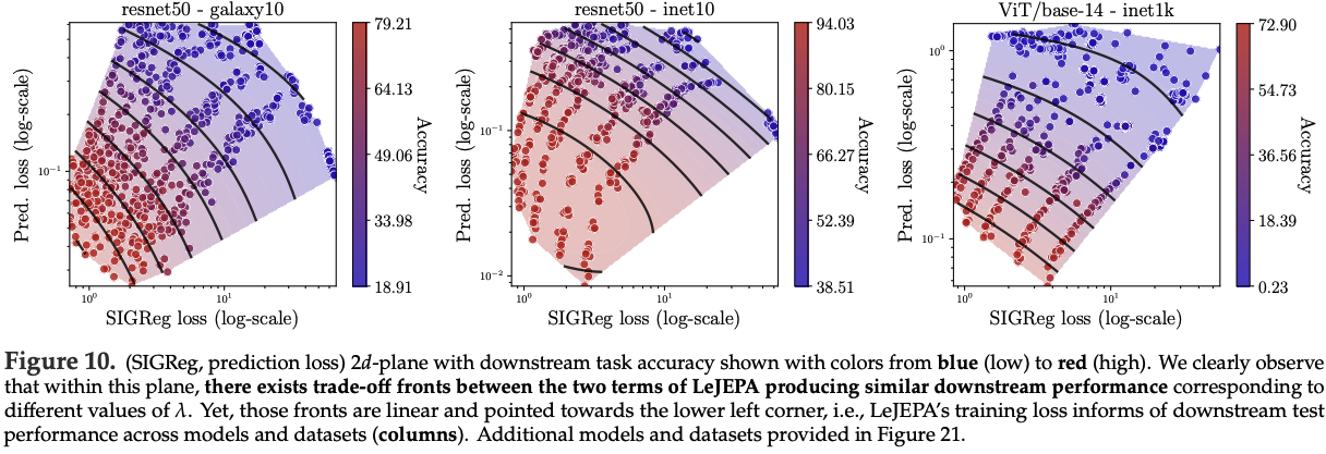 - 6.2 LeJEPA’s Training Loss is a Reliable Indicator of Downstream Performance (LeJEPA의 학습 손실은 최종 성능의 신뢰할 수 있는 지표이다)