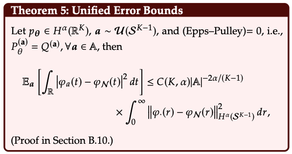 이 성질이 Epps-Pulley 테스트의 이론적 기반입니다. 즉, 특성 함수는 분포의 **'고유한 지문(fingerprint)'** 과 같습니다. 두 지문이 일치하면, 두 사람은 같은 사람입니다.