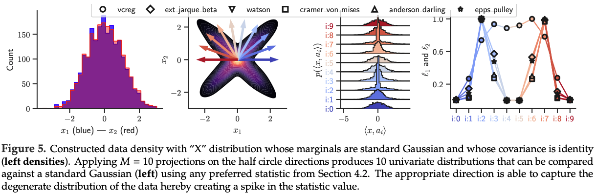 * (여기서 아주 좋은 점은, `Q_target`이 등방성 가우시안이면, 그것의 1차원 프로젝션 `Q_target^(a)`는 어떤 방향 `a`에 대해서든 **항상 똑같은 모양의 표준 정규분포**가 된다는 것입니다.)