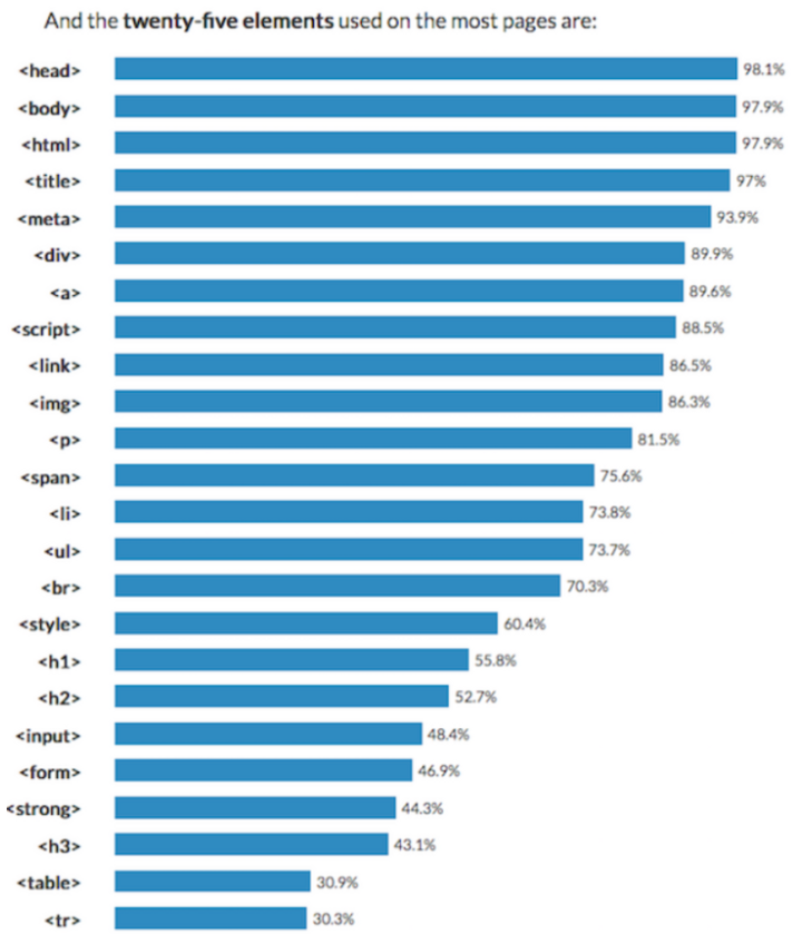 This study looks at 11 mm index pages gathered from Top 20 Google results to uncover how people write HTML markup as new web tech emerge.