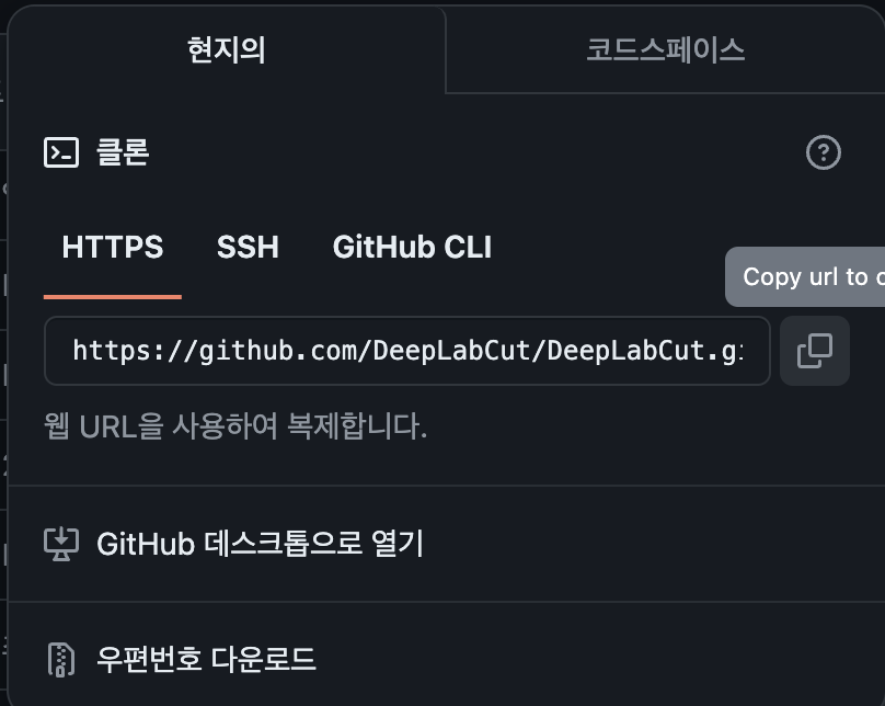 github 들어가서 다음과 같은 https 주소 복사해주고