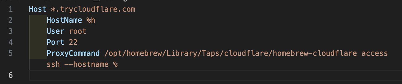 ProxyCommand <PUT_THE_ABSOLUTE_CLOUDFLARE_PATH_HERE> access ssh --hostname %h