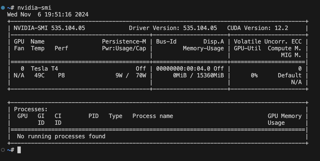 새로운 창 VSCode 터미널에 nvidia-smi 입력 시 GPU가 잘 할당된 걸 확인할 수 있다.