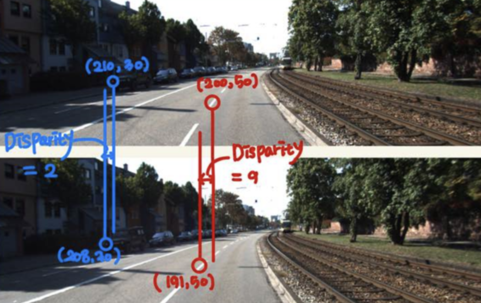 - left image와 right image로부터 차이가 얼마나는지로부터 Disparity를 파악할 수 있다. → Depth를 추정