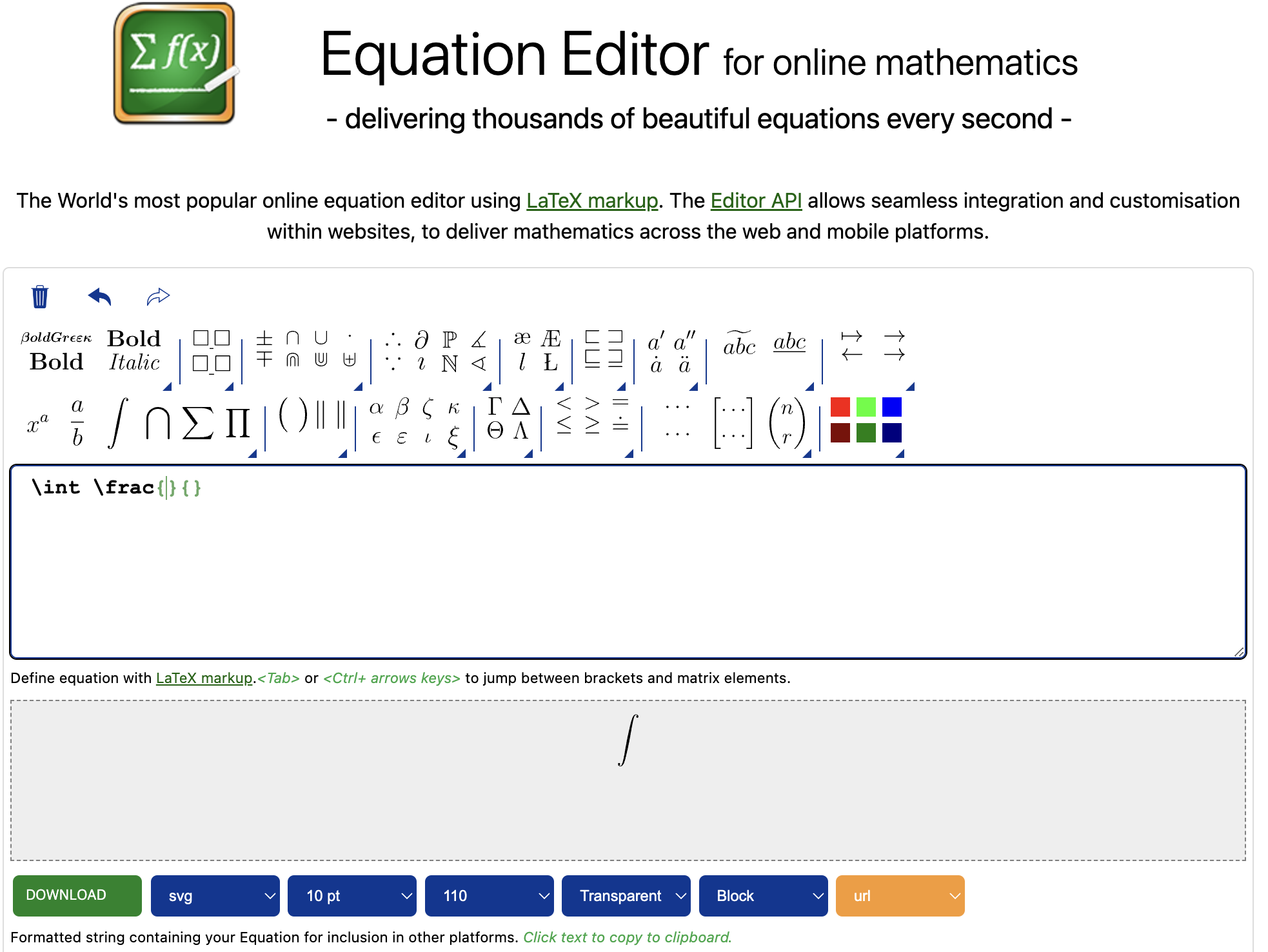 Equation Editor for online mathematics - create, integrate and download