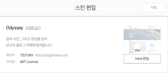 [관리] -> [꾸미기] -> [스킨 편집] -> [html 편집]을 누른다.