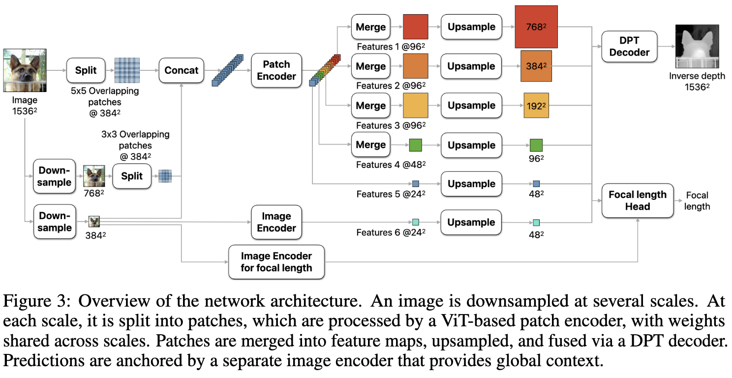 Depth Pro는 여러 기술적 기여를 통해 가능해짐.