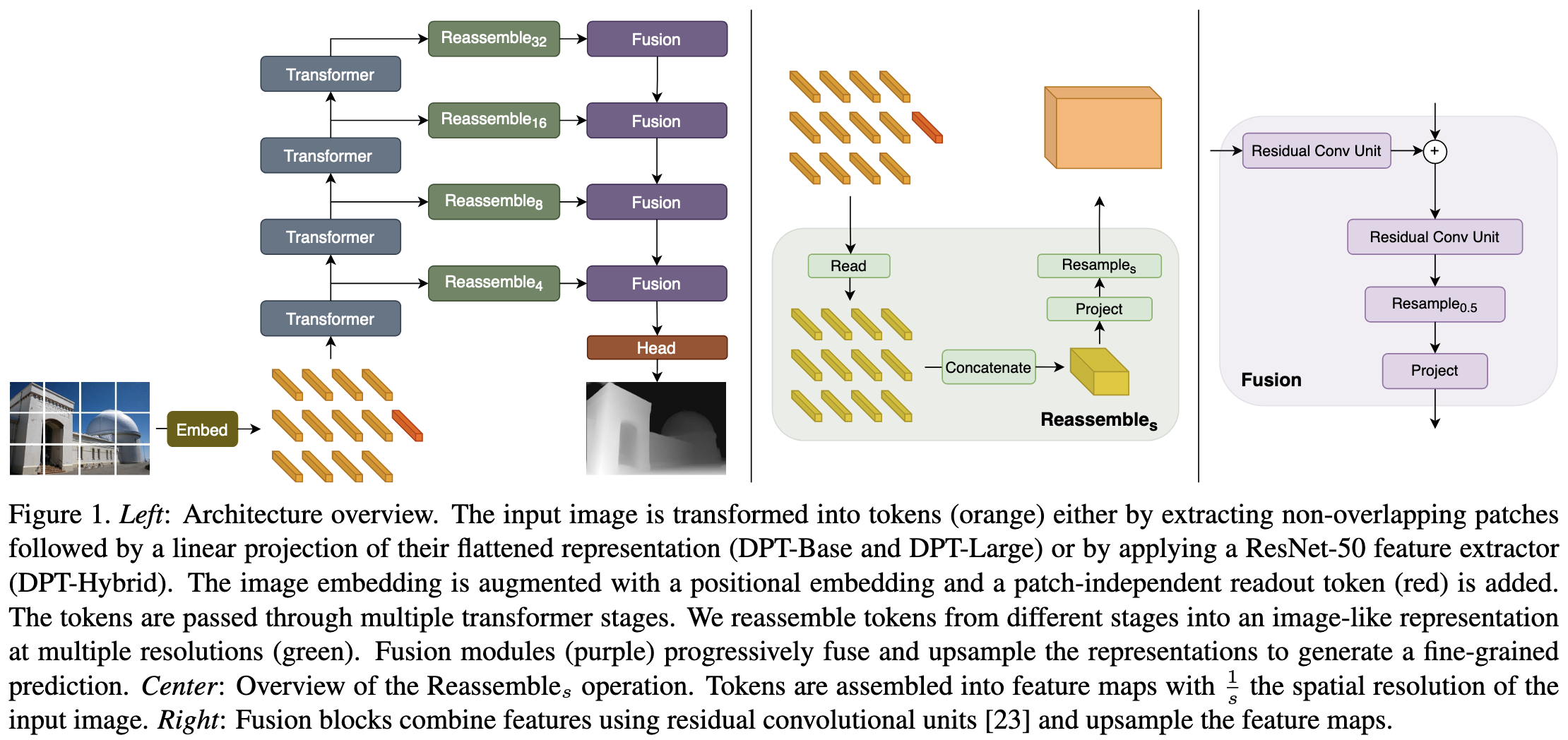 - DPT는 트랜스포머를 인코더의 기본 계산 단위로 사용하는 아키텍처: