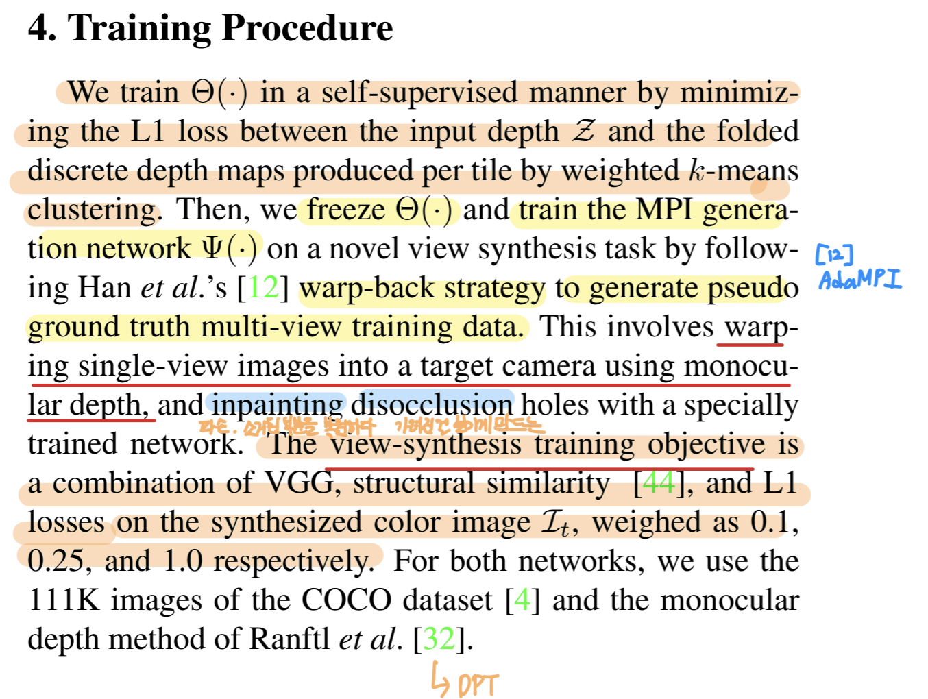 • 학습할 때 Han et al. [12]의 warp-back strategy를 사용하여 pseudo ground truth(가짜 다중 시점 데이터)를 생성