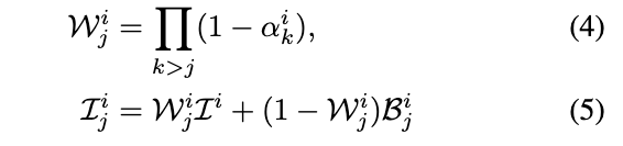 1. 복잡한 장면의 외형을 잘 표현. 2. 깊이 오류를 줄이고. 3. 물체의 부드러운 가장자리를 더 자연스럽게 합성한다. - RGBA : Red, Green, Blue, Alpha : Alpha는 투명도(Opacity)를 나타내며, 평면 간 블렌딩이나 부드러운 가장자리 표현에 사용.