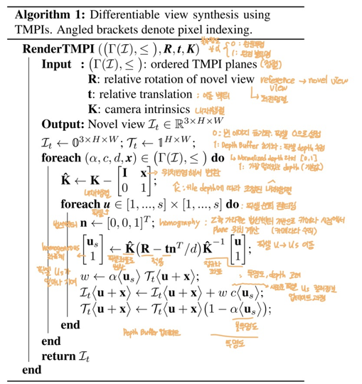 - neural radiance fields(NeRF)와 달리, MPI는 그래픽 하드웨어에서 효율적으로 렌더링가능