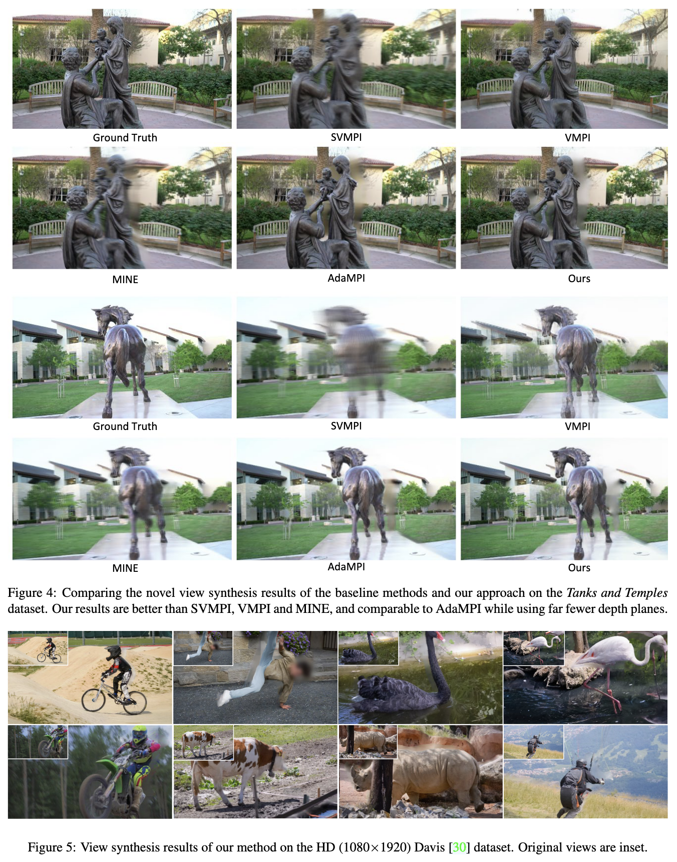 - 합성 결과는 state-of-the-art single-view MPI방법과 비교할 만한 품질을 가지며, 계산 비용은 더 낮다.