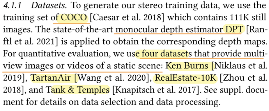 • 학습을 위해 스테레오 데이터 쌍(원래 이미지와 새로운 시점의 이미지)을 생성합니다.