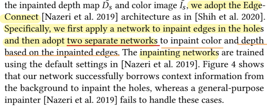 • → 이때 생기는 mask(occlusion hole) 를 이용해 disocclusion inpainting 학습용 데이터를 만드는 것이 목적