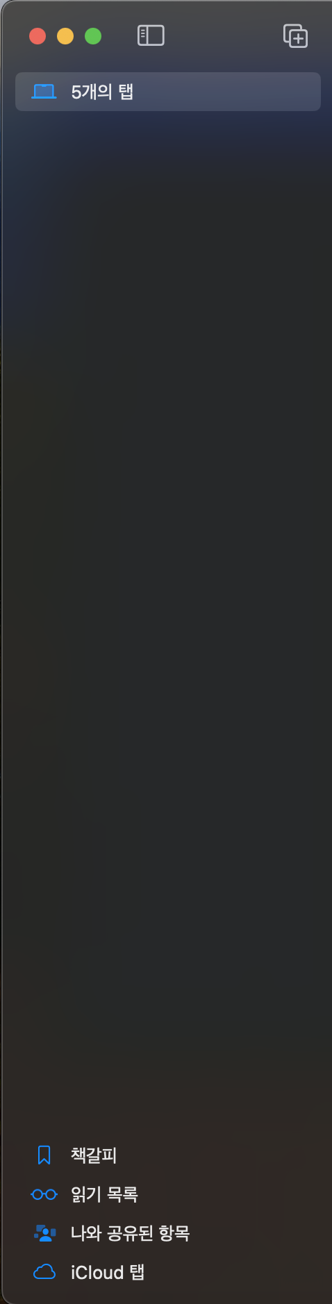 1. 사파리 사이드바를 눌러준다. 그럼 다음 사진과 같이 뜬다. 하단의 책갈피 클릭.