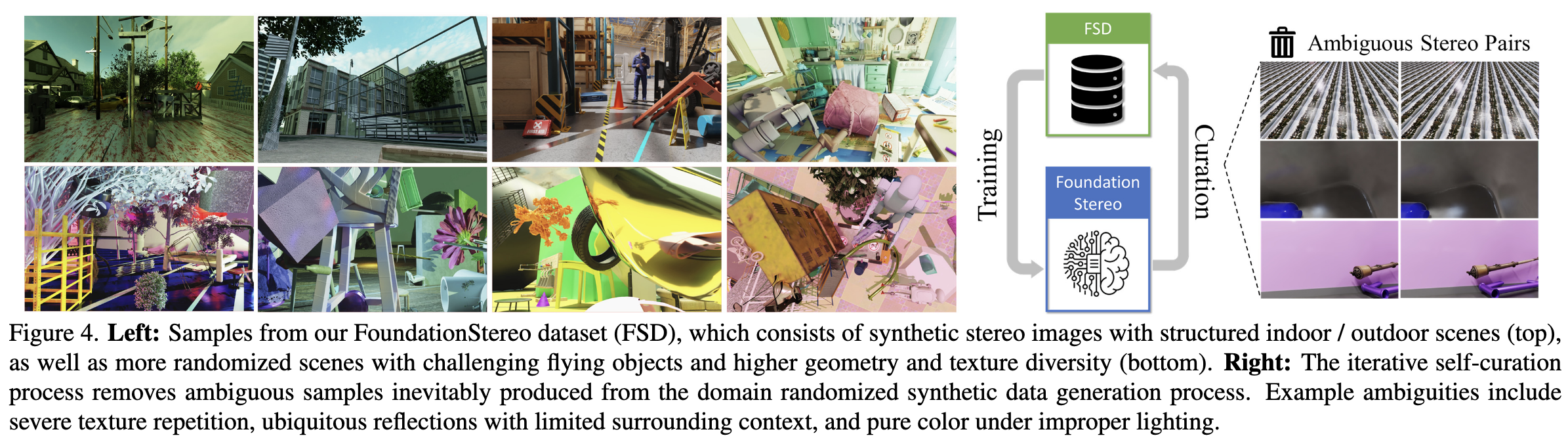 처음에는 FSD로 FoundationStereo 초기 버전을 학습하고, 이 모델을 FSD에 대해 평가함.
