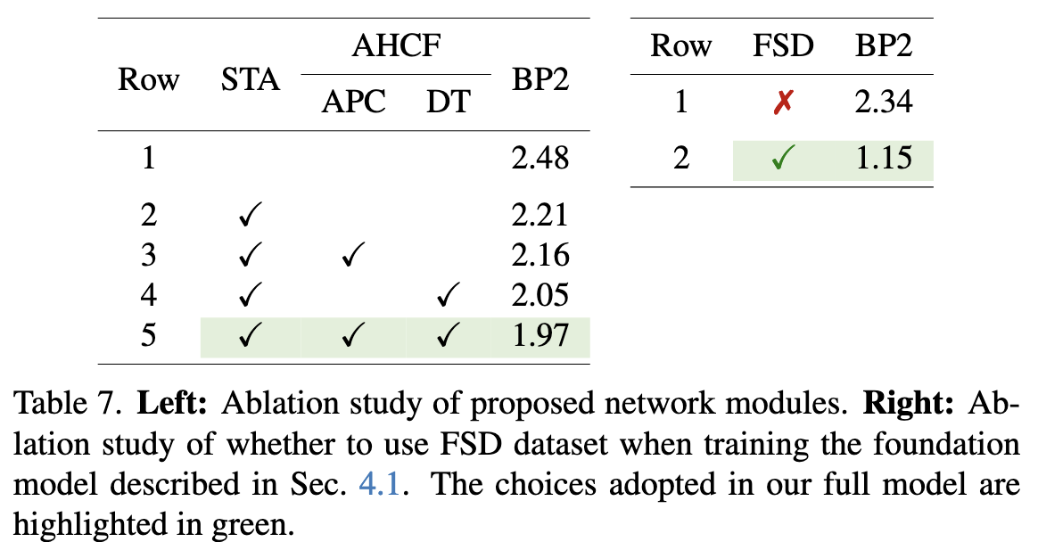 결과는 Tab. 7 (right)에 제시됨.
